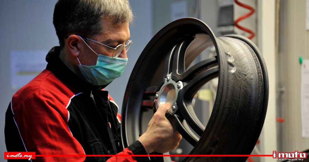 The Superleggera V4 is the only motorcycle in the world, approved for road use, with the entire load-bearing structure of the chassis (frame, subframe, swingarm and rims), made of composite material, obtaining, for these components only, a weight saving of 6.7 kg compared to those of the Panigale V4 MY20. To ensure the highest quality and safety standards, these components are 100% controlled by the most sophisticated techniques borrowed from the aerospace industry, such as thermography, ultrasound checks, and tomography.