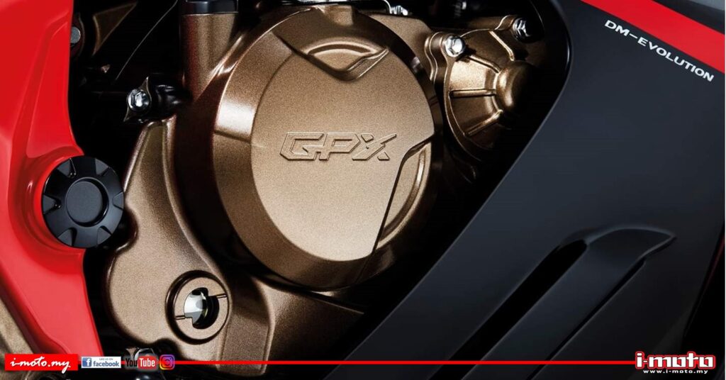 Newly launch by GPX Racing Thailand is the all new GPX DEMON GR200R, has sparked a new dimension in its 200cc class, with futuristic design 17-inch rims, powered by a water-cooled, 6-speed, 200cc SOHC engine, GPX-Fi (Delphi) is Euro4 compliant, gives torque up to 17.2 N. m at 6,500rpm with 19hp @7,500rpm. DID 428 chain with O-Ring are fitted as standard fitting which GPX claims the chain life 3 times longer than normal.