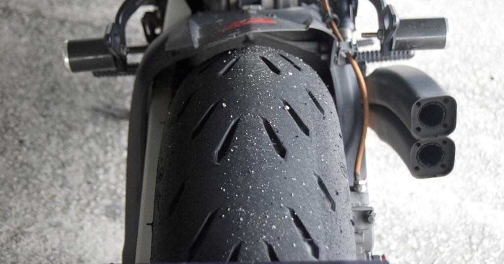 As I said earlier, the immediate feeling was hard, the Power GP has 68% harder compound in the middle of the tyre, while the side was a soft compound evenly distributed left and right side. The other “Feeling” that I need to mention is the Power GP feel rounder that the tyre I was using previously. The rounder the tyre here would let the rider take a slightly different line; I would say smoother lines instead of a quick turn. I had to adjust a little of my turning but I could start cracking the throttle earlier too. I was amazed with the GP’s compound; I could not slide the Power GP.