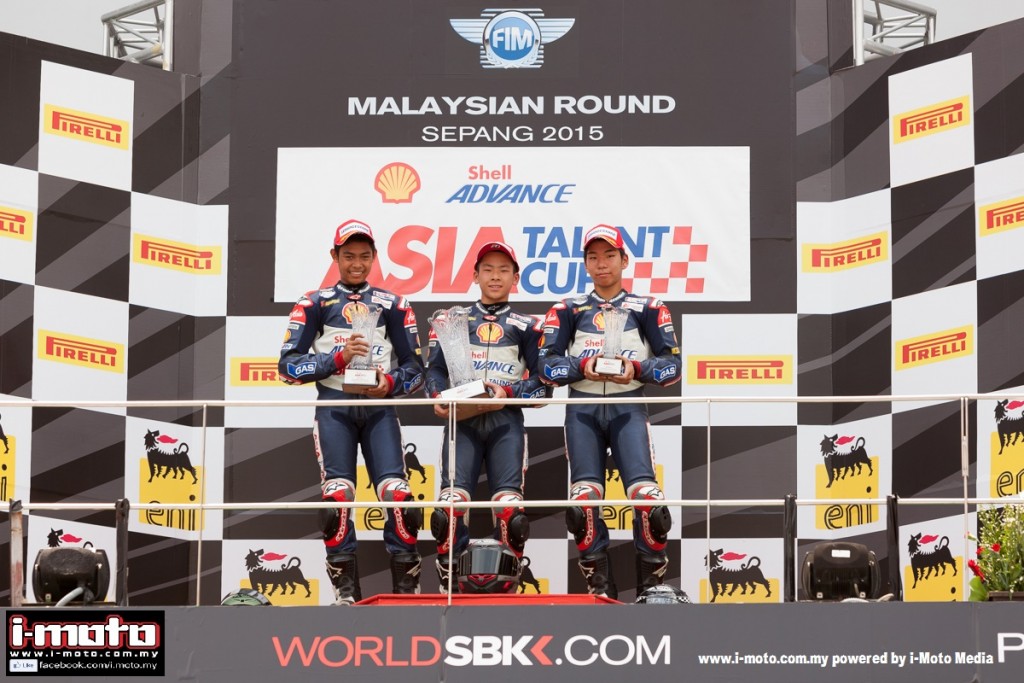 Adam Norrodin’s first podium of the year at Sepang SAATC Race 1, 1st Aug 2015 An exciting race between Adam Norrodin and Masaki saw the leader’s authority imposed in the Shell Advance Asia Talent Cup, but a great victory by Japan’s Ayumu Sasaki in the first race of the Shell Advance Asia Talent Cup, running alongside WSBK […]