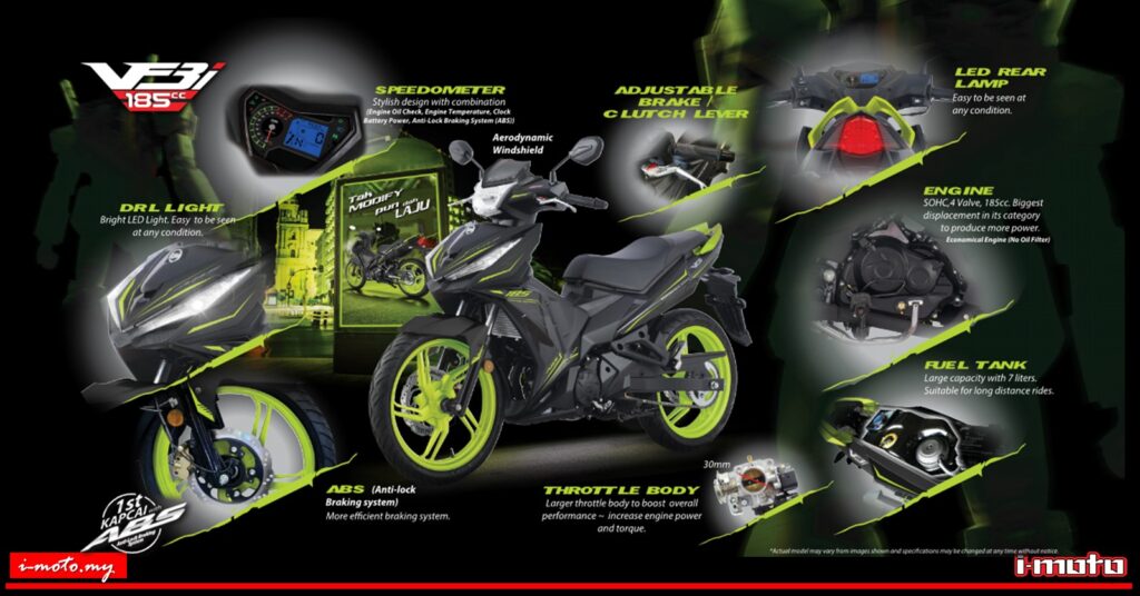 SYM VF3 185i ABS This would be the first Moped (Kapchai) to be equipped with ABS in Malaysia. More enhancement were done internally inside the VF3 185i Limited Edition engine. There are 9 main enhancement to the VF3. ABS Front & Rear ( 1st Moped to have ABS front & back) New Cam Shaft New […]