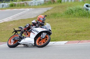 Sunday 6.30am, 26th July, we pack our racing suits to go for the ultimate track test in the Sepang Go-Cart Circuit, we were so excited! Reached SIC Cart tack, we even registered 1s,, after registration went straight to KTM truck and pick out the RC390, after getting the RC, we asked CA guys to dismantle the front mirror (that the only thing plus the rear mudguard plate holder we dislike about the RC series) but never the less the RC390 stands out, and took out the passenger foot peg